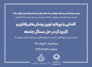 نشست آشنايى با رويكرد نوين بينشهاى رفتارى و كاربرد آن در حل مسائل جامعه؛ همراه با بررسى نمونههايى از كاربرد بينشهاى رفتارى در مواجهه با كرونا در دانشگاه تهران برگزار میشود.